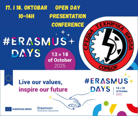 Еrasmus дани у Средњој техничкој школи Од 13. до 18. октобра одржава се манифестација Ерасмус дани (Еrasmus Days) која има за циљ да промовише Ерасмус програм, вредности и значај које овај програм има за просветне… Прочитај више »Erasmus дани у Техничкој школи